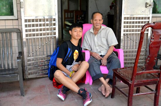 伴着清晨的阳光,莫坤同学与奶奶快乐的合影。
