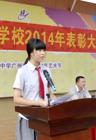 随后,高中部杨红霞老师代表教师团队对黄广学子在过去一学年的优异表现和杰出成绩给予高度认可:“你们以实际行动向父母交出满意的‘孝心卷’,向老师交出欣慰的‘感恩卷’,向同学们交出亮眼的‘榜样卷’”;家长代表叶女士以自家孩子的进步与成长为中心展开话题,表示广州市黄广中学展的最优选择;学生代表陈星宇同学与现场师生诚恳分享在黄广学习生活的种种心得体会,表达自己对学校的感激,引起现场学生的强烈共鸣。