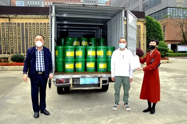 从新冠状病毒疫情蔓延至今得到一定程度控制,广州市黄广中学一直依照国家及上级部门的各项指示,为师生随时回归校园进行全方位的准备,各项工作得到来自家长的关注及认可,家长们也纷纷以实际行动就校园防疫体系的有效运作提供强大助力,围绕“全面保障学生健康安全”核心,齐心协力创建家校防疫防控统一战线。近日,黄广学校再次获得来自学生家长的爱心捐赠——七(10)班许启祥家长许波先生特向学校输送2吨84消毒液。