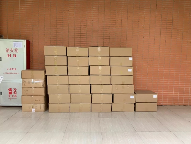 高二(2)班曾玥涛同学家长也向学校捐送1000个口罩及60支消毒酒精。
