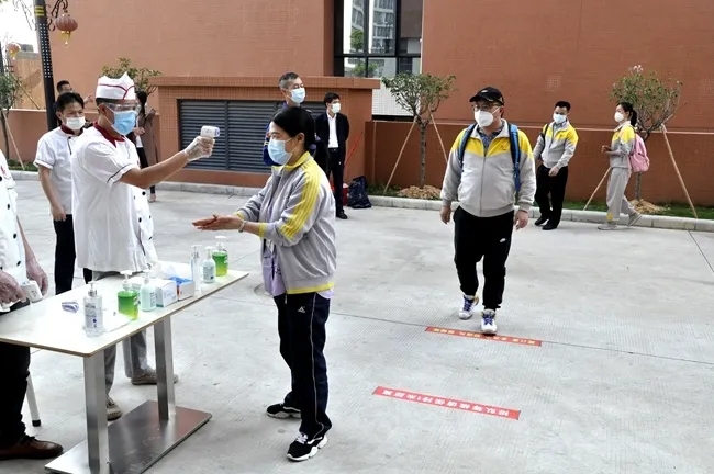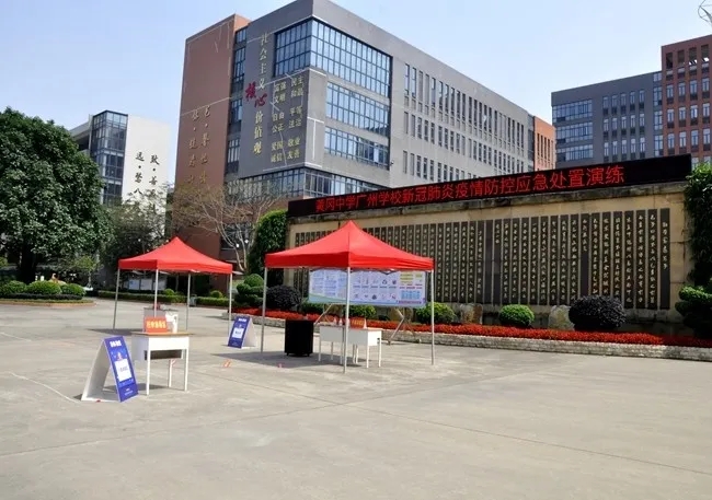 为全面迎接4、5月分批返校的学生,深入落实师生回归校园的疫情防控工作,着眼于疫情防控、安全保障等核心为师生打造校园运作机制体系,广州市黄广中学于4月15日组织开展了覆盖校园日常全流程的疫情防控应急&开学演练。