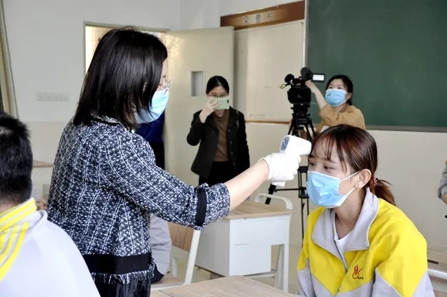 在教学区,必须早、中、晚三次测温登记,学生座位尽量保留1米间隔,课室空气保持流通。