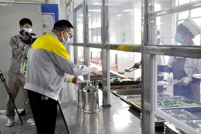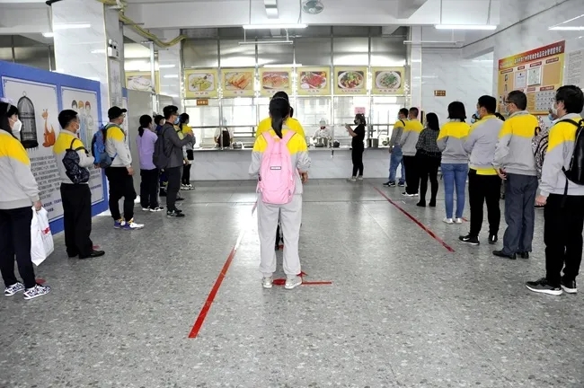 “学生”在保持间距的前提下有序排队取餐,按指定位置进餐,面向同一个方向,进餐时才脱除口罩,饭后起身前戴好口罩离开,就餐过程中必须做到不聚集、不交谈。