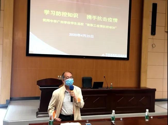 特别值得一提的是,清布社区卫生服务中心万友根副主任及张少莲医生,分别由上级部门指派担任学校兼职的卫生副校长及卫生指导员(驻点医生),专门出席本次培训会,作为防疫专业讲师,从新型冠状病毒肺炎临床症状、传播途径以及校园病毒防控消杀要点、各部门应对方式、心理危机干预等方面,为现场领导及教师作权威级的讲解普及,并就黄广学校现行的防疫体系作出客观评价及细节指导,助力学校进一步优化升级疫情防控机制。