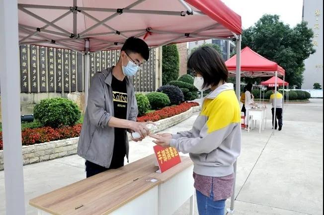 额温枪测温+行李消毒+手部消毒,流程明确的重重关卡,分批到校的学生抵达入校也可根据指引保持秩序。