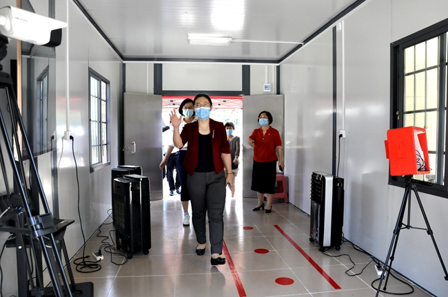 指导团一行特别关注学生返校后上课、就餐、住宿等情况,先后视察了食堂、学生宿舍、校医室等防疫重点场所,询问了第一批返校的初三/高三毕业班学生的健康情况,指导学校对校园人流密集区域如何更好地开展防疫防控,同时就如何迎接第二批学生返校进行了重点指导。