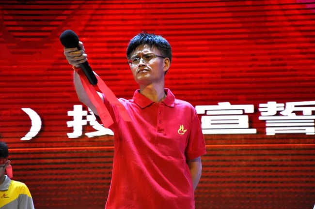 班级代表引领班级学生呐喊本班的冲锋誓言,口号不仅仅停留于“口号”,饱含学生们用青春写下诗行、梦想张开翅膀的信心魄力,凝聚着奋战中考、誓书辉煌的精神意志。