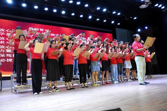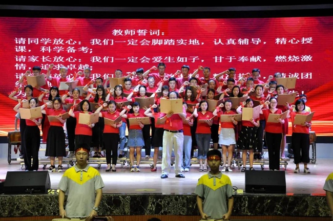 初三老师们铿锵有力的热血誓言回荡礼堂,誓领中考军团迎难而上、创造奇迹的斗志决心感动了现场每一位师生。