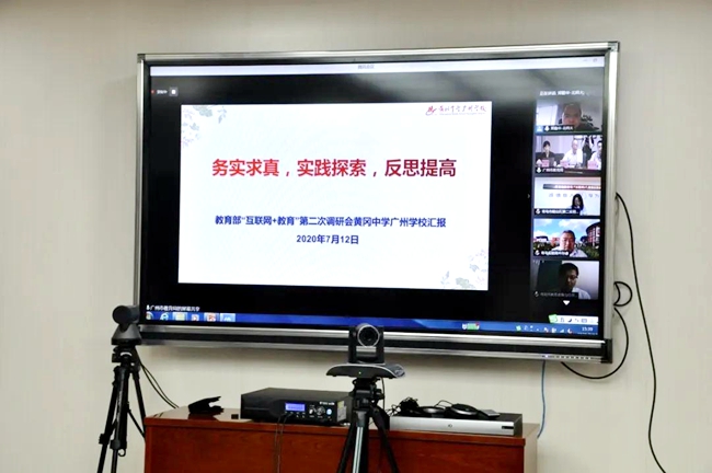 7月12日,教育部委托北京师范大学组织召开以“互联网+发展状况”为主题的网络调研会。调研会议以远程连线的模式展开,广东省、山东省教育厅分别在广州、青岛市选派于信息化教育领域具备实践探索经验成果的优秀学校,参与本次联动性专家研讨。广州市黄广中学作为广州的三所获邀学校之一,由孙传华副校长就学校“互联网+教育”的开展情况,与来自北京、青岛、广州的专家及中小学同行进行深度交流。