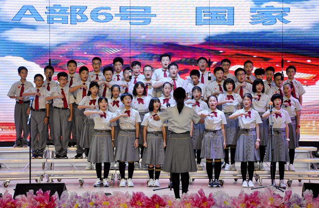 “我和我的祖国,一刻也不能分割,无论我走到哪里,都流出一首赞歌……”