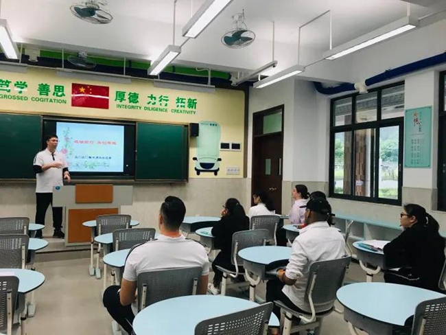 在广州市黄广中学队到来之前,三所小学系统组织全学科教师关于任教学科核心素养的研讨、培训、考核工作。同时根据上游初中、下游幼儿园实际情况制定了幼儿园、小学阶段学生学科素养评价标准,特别将学校长期坚持的学习、生活、做人、文明礼仪四个好习惯制定了详细的评价标准,纳入系统化、标准化评价体系中。