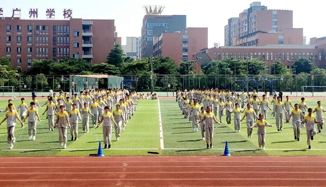 为丰富高一学生进入高中阶段的校园文体生活,在帮助高一学子更好融入高中学习生活的同时,着力强化同学们的集体思想、团队精神,广州市黄广中学近日以“花式跳绳+团队操”的创新结合方式,组织举行了高一年级团体趣味体育比赛。