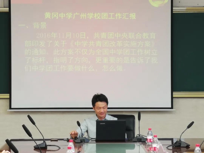 黄广学校团委张森林书记详细汇报了近年来学校团委工作开展情况及创新成果,同时分享了下一阶段的工作目标和发展方向。
