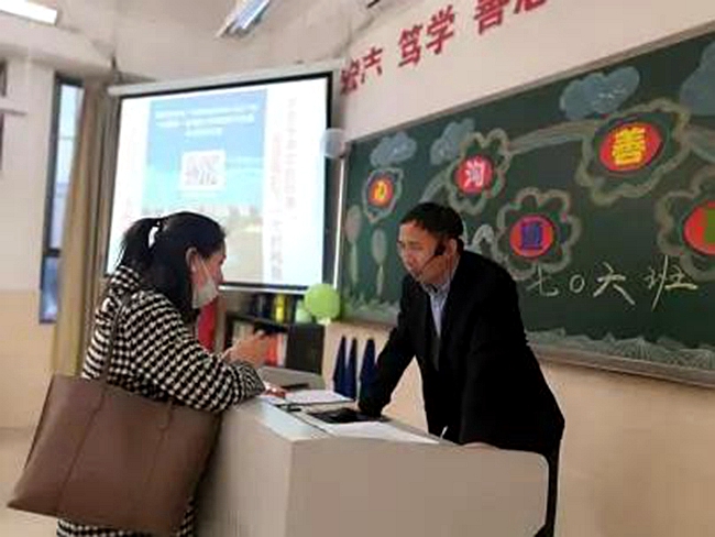 家长会后,老师们针对学生现阶段的表现及需要注意的问题,为家长作一对一答疑。