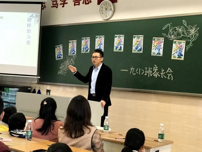 班级教室中,班主任老师联同各科任老师向学生和家长们细致分析班级学科的成绩数据,班主任老师对日常表现优异、各方面进步显著的同学进行表扬,树立学业成绩、常规德育、意志品质、行为习惯、综合素质等诸方面优秀榜样。