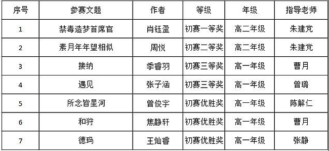 在此感谢高一、高二语文组辅导教师,祝贺所有获奖学生!