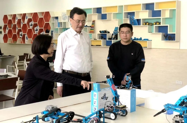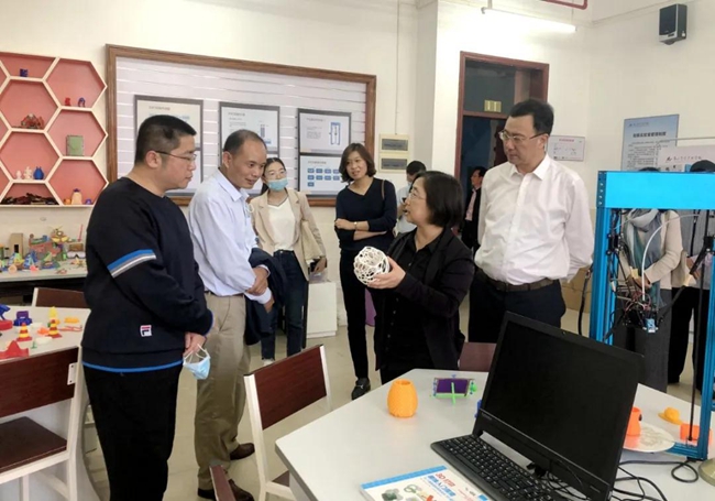 黄广学校范小星执行校长等代表对沙向东书记一行的到来表示热烈欢迎,并陪同来宾们走进陶艺实践专用教室、创客教育基地(3D建模及打印、物联网、智能机器人)、教育成果陈列馆、运动场等核心功能区域,多维度、深层次介绍了黄广“智慧教育”特色文化、素质教育架构体系。