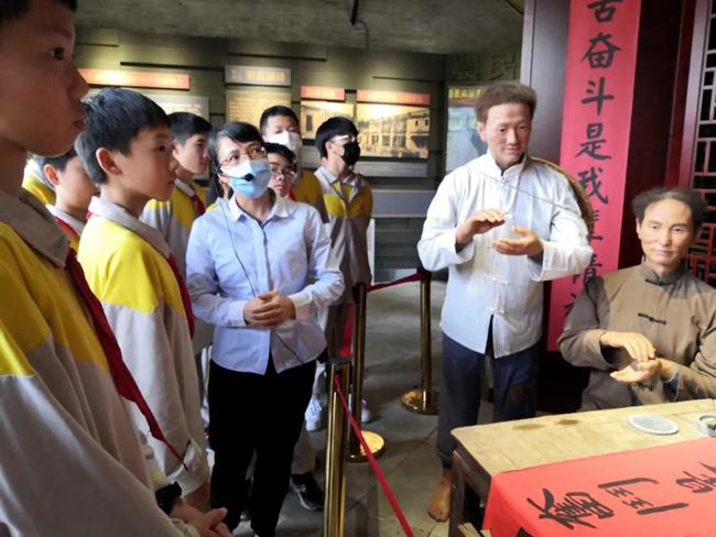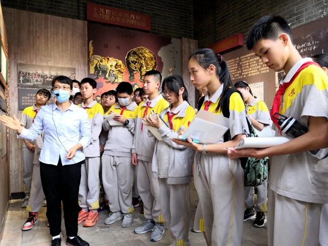 近日,广州市黄广中学组织师生团队参观花都区“红色教育基地”——花县第一届农民协会旧址,并现场开展以卫生清理为模式的志愿活动,党支部书记黎强为参与活动的少先队员、共青团员开党史教育课。