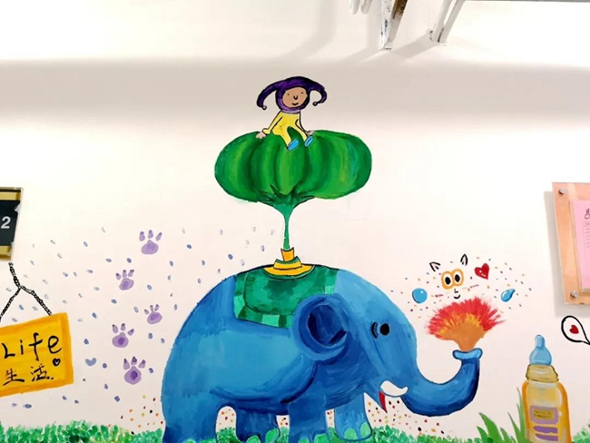 清新脱俗,吸引一位位经过或等候的家长路人驻足欣赏。