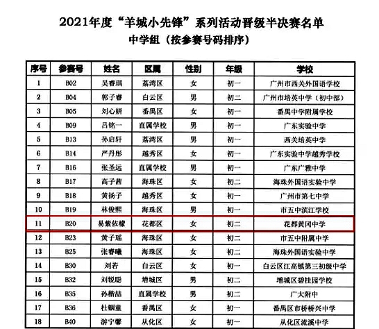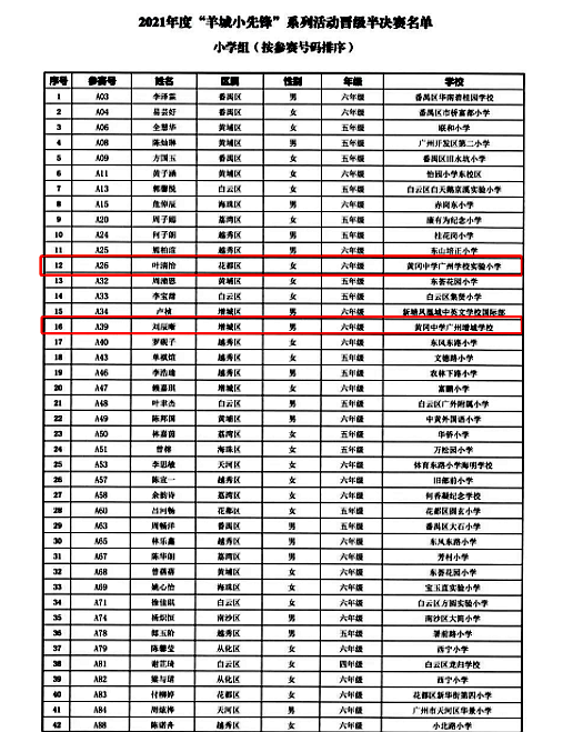 【精英教育成果全面开花】黄广集团3所中小学全部上2021年度“羊城小先锋”半决赛榜单
