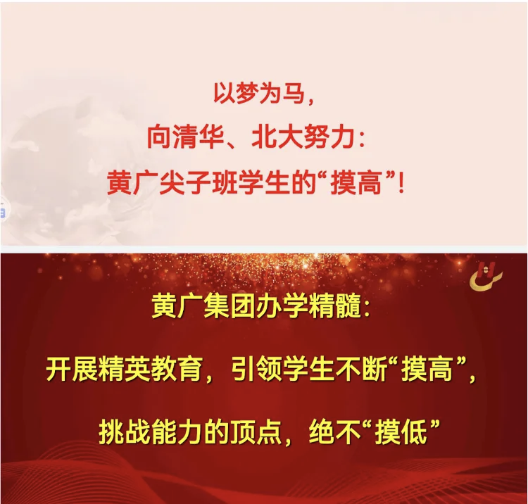 黄广中学是清华大学生源基地,是北京大学博雅人才共育基地(广州仅4所,民办中唯一)。近年来,学校充分发挥平台优势,特设“博雅人才培养中心”,深耕拔尖创新人才培养,引领优秀学子持续“摸高”、考入“清北”,拔尖人才培养成果显著 。