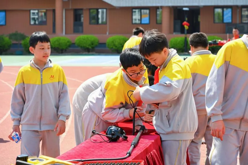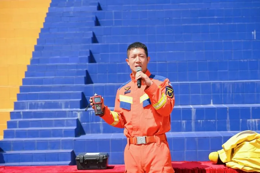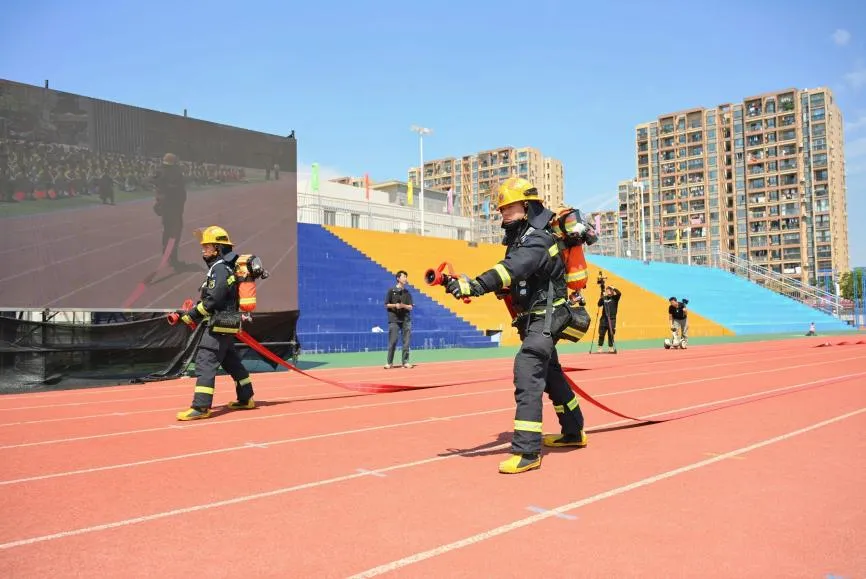 现场1000余人参与、观摩了模拟火场逃生、云梯救援演练,消防搜救犬技能、消防救援装备展示。学生近距离接触液压破拆工具组、热成像仪、消防无人机等“高精尖”装备,观摩了消防指战员原地着装、快速铺设水带、灭火器灭火实操演示,还穿战斗服体验穿越逃生帐篷......