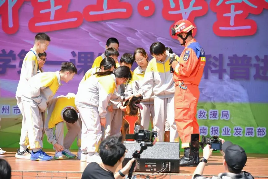 新学期,新气象。安全永远是第一位。校园人员集中,任何一点小小的疏忽,都可能带来安全隐患。今天云梯救援、灭火体验、搜救犬展示、逃生自救等沉浸式的学习演练,就是要把消防知识讲得通俗、学得明白、练得扎实。