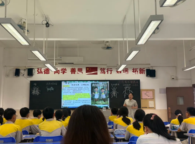 《昆虫记》名著同课异构主打趣味与项目化设计。梁老师以封面竞选为情境,让同学们通过抢答、展演感受昆虫特质,树立敬畏生命意识并衔接中考。